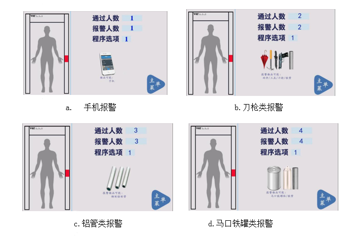 电子产品+违禁品探测模式:可实现排除被检测人员身上的机械手表、皮带扣、钥匙串等随身携带的日常金属物品,该模式除了检测手机外,还能检测到大多数违禁品。